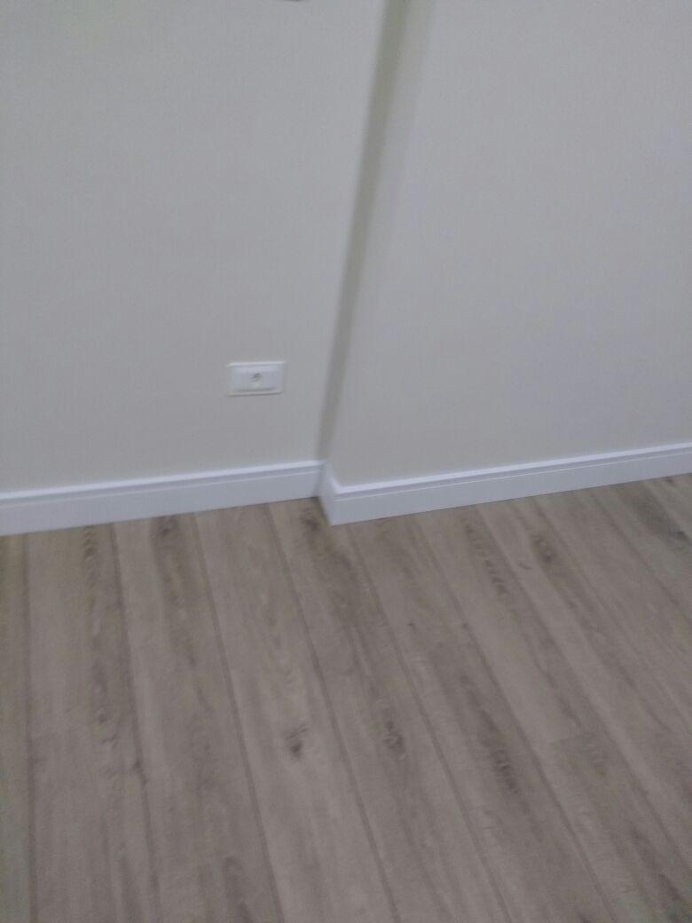Piso laminado Durafloor Studio Carvalho Dover com rodapé Santa Luzia 12cm
