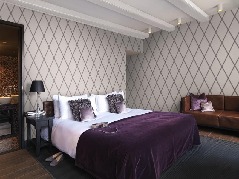 Papel de parede lavável, textura vinílica, imitando couro em forma de losango em tom de cinza.